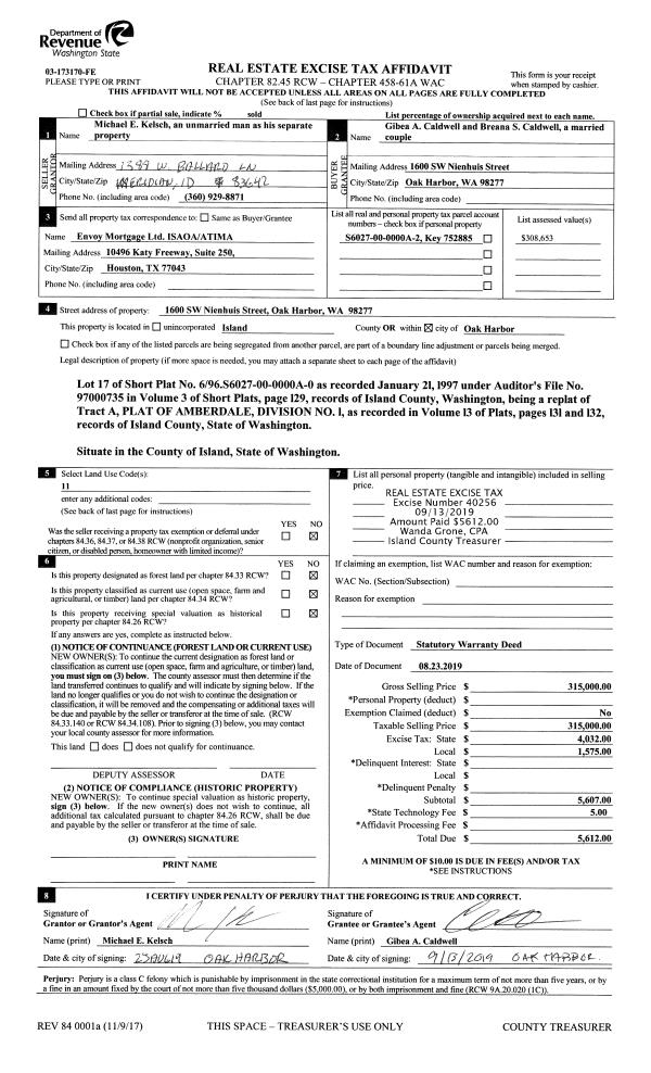| Mailing Address: | AMY M EGAN 328 COTTONWOOD DR CAMANO ISLAND, WA 98282 | % Ownership: | 100.0000000000% |