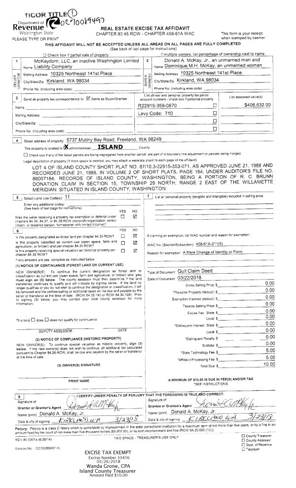| 2 | 02/02/2018 | WD | Warranty Deed | MCCARTY, TRUSTEE, MARY C. | CASCADE GENERAL CONTRACTING, INC | | | $85,000.00 | 32873 | 4438752 |