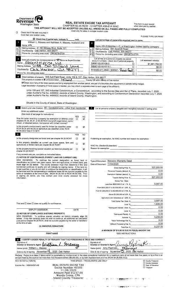 | Mailing Address: | 4317 HERRING ST LANGLEY, WA 98260 | % Ownership: | 100.0000000000% |