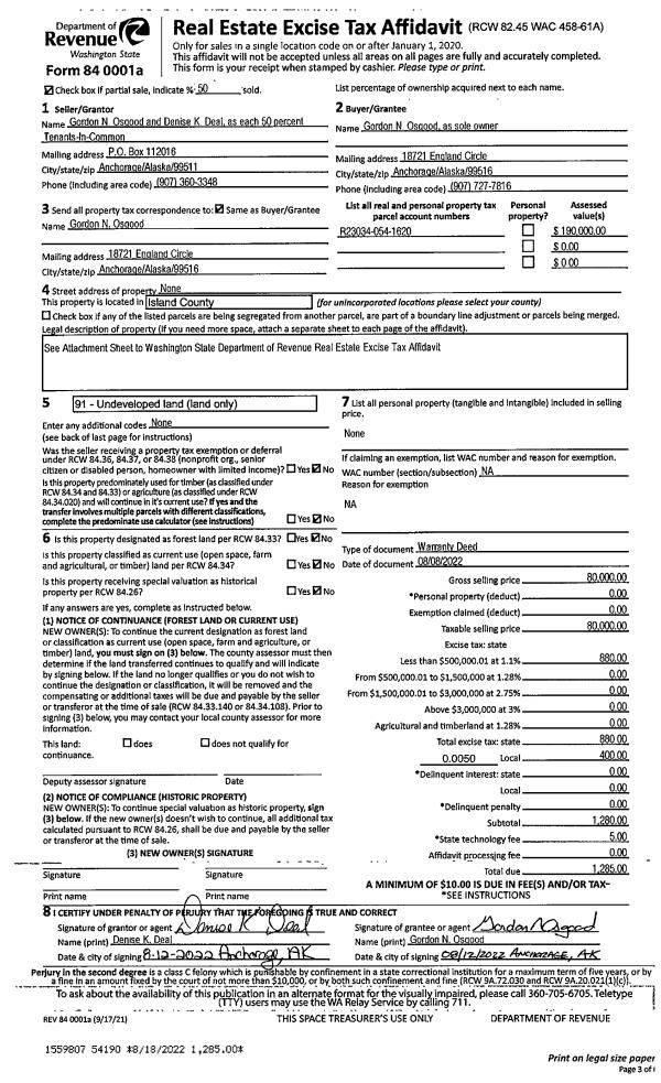 | Mailing Address: | 1095 ARROWHEAD RD CAMANO ISLAND, WA 98282 | % Ownership: | 100.0000000000% |