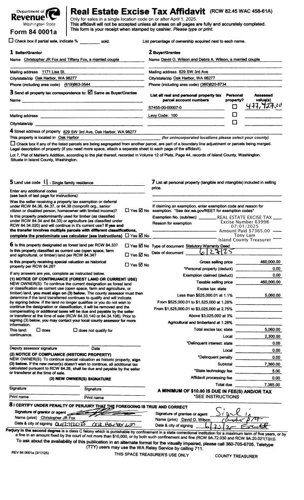 | Mailing Address: | ROXANNE B TYE 1566 ALLYSON ST OAK HARBOR, WA 98277 | % Ownership: | 100.0000000000% |