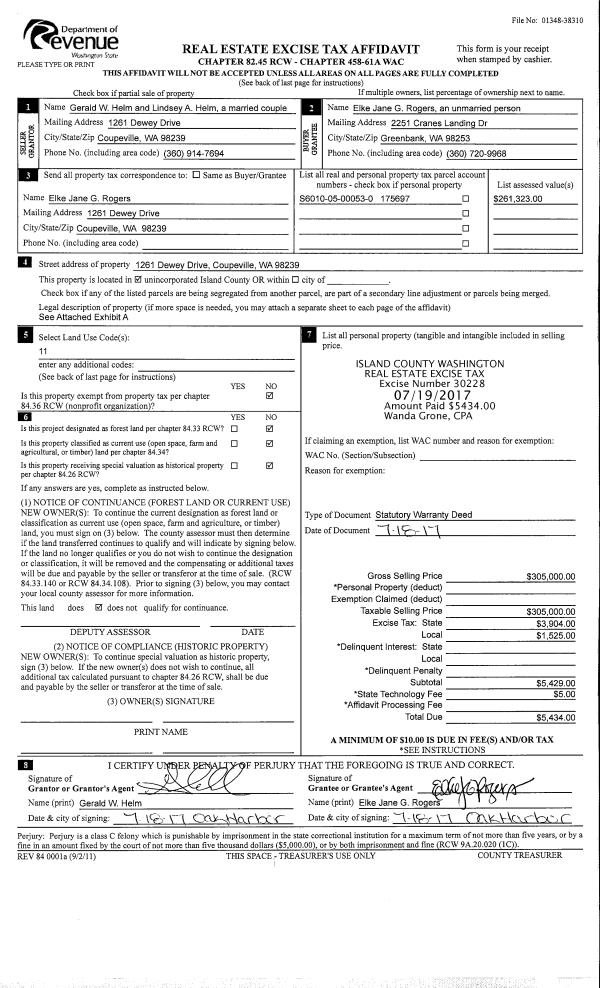 | Mailing Address: | 595 SHIPPING VIEW DR FREELAND, WA 98249 | % Ownership: | 100.0000000000% |