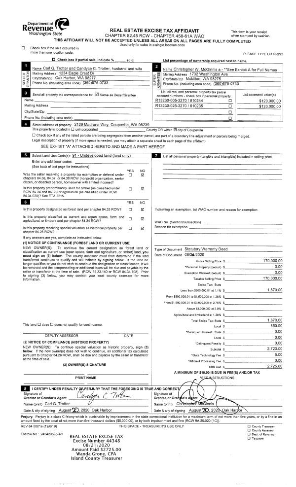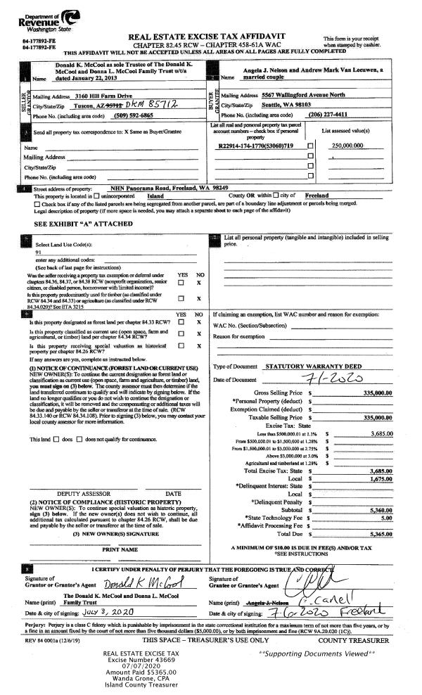 | Mailing Address: | 546 BUSH POINT RD FREELAND, WA 98249 | % Ownership: | 100.0000000000% |