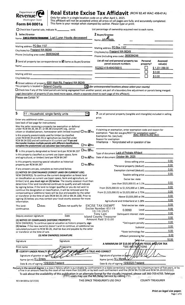 | Mailing Address: | MYRA H MAYER 586 COOK RD CAMANO ISLAND, WA 98282 | % Ownership: | 100.0000000000% |