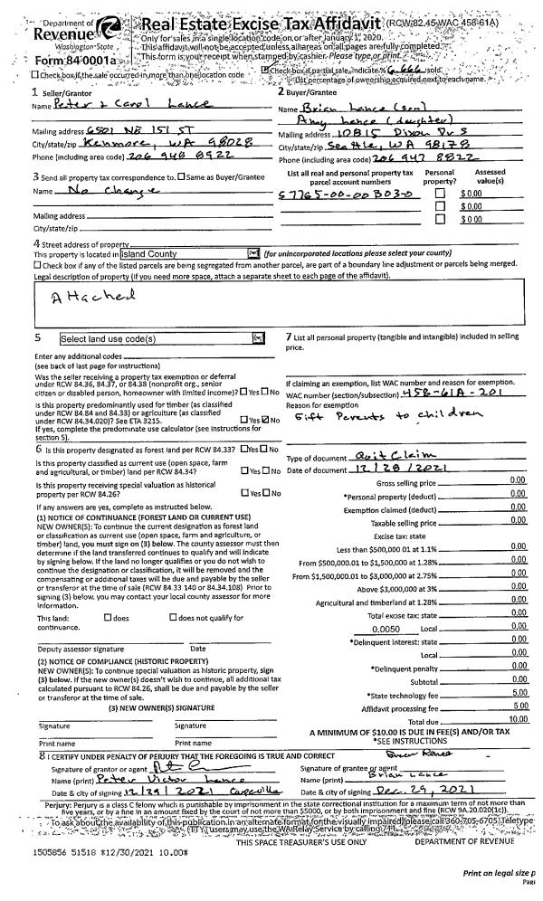 | Mailing Address: | 428 STIRLING DR CAMANO ISLAND, WA 98282 | % Ownership: | 100.0000000000% |
