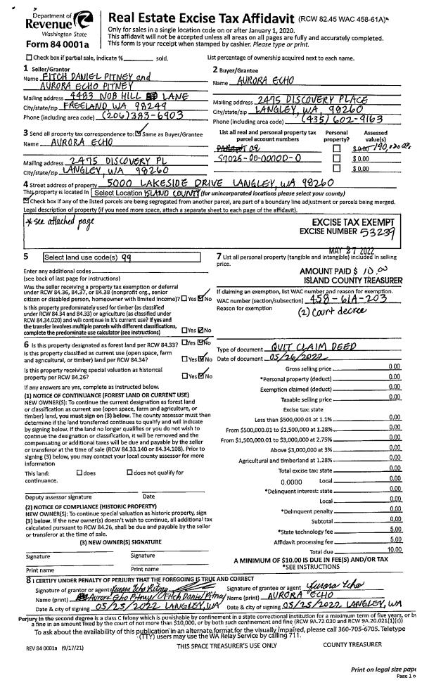 | Mailing Address: | JANE CASSADY 620 MOE RD CAMANO ISLAND, WA 98282 | % Ownership: | 100.0000000000% |