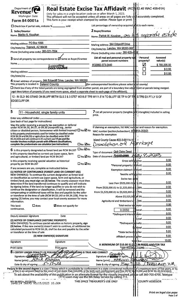 | Mailing Address: | 311 MELISSA ST CAMANO ISLAND, WA 98282 | % Ownership: | 100.0000000000% |