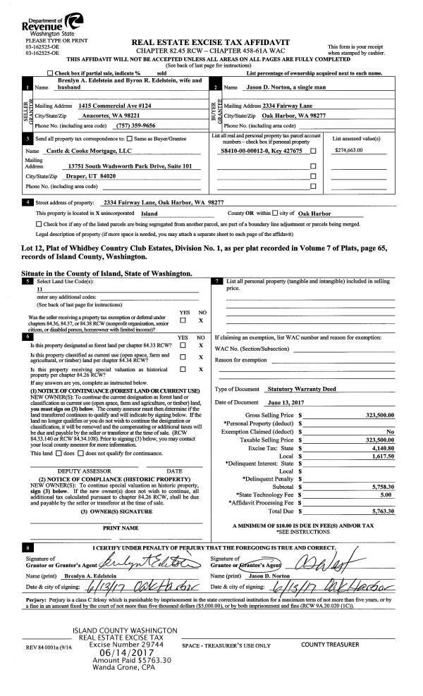 | Mailing Address: | 486 SE IRELAND ST OAK HARBOR, WA 98277 | % Ownership: | 100.0000000000% |