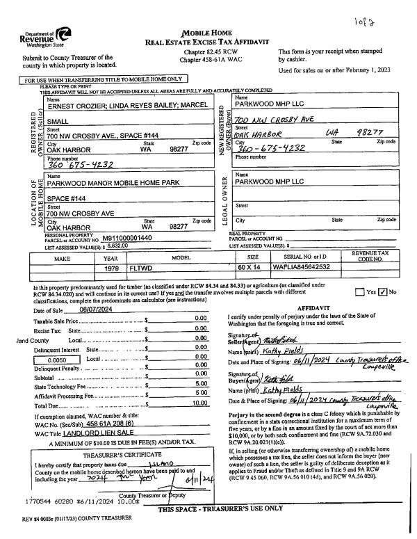 | Mailing Address: | 657 SE JEROME ST OAK HARBOR, WA 98277 | % Ownership: | 100.0000000000% |