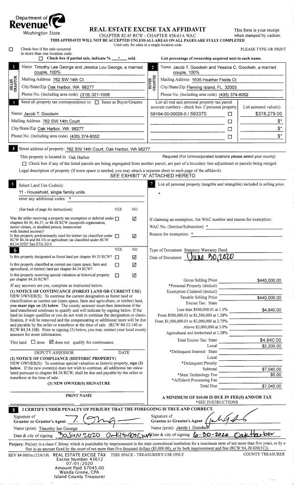 | Mailing Address: | CASSIEANN NICOLE LEVEE 2327 SW ROSARIO PL OAK HARBOR, WA 98277 | % Ownership: | 100.0000000000% |