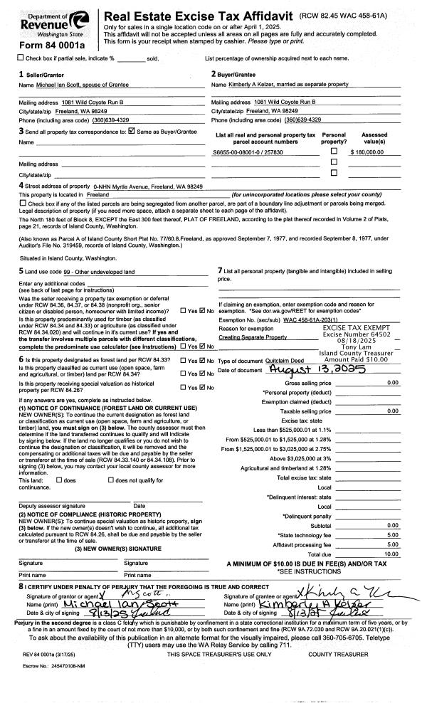 | Mailing Address: | SANDRA D SMITH 611 OLYMPIC VIEW DR COUPEVILLE, WA 98239 | % Ownership: | 100.0000000000% |