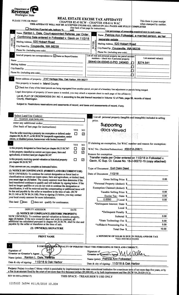 | Mailing Address: | 843 PATMORE RD COUPEVILLE, WA 98239-9501 | % Ownership: | 100.0000000000% |