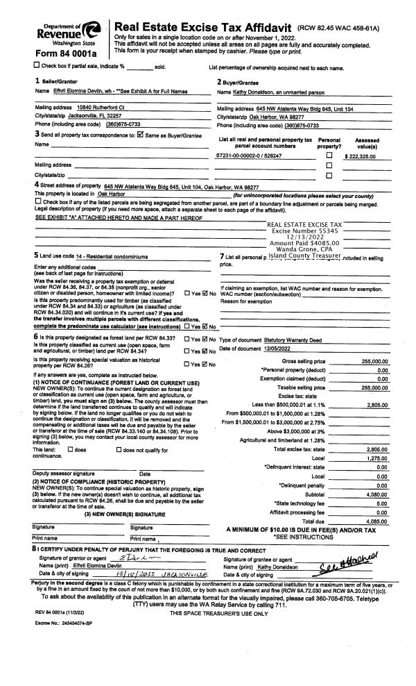| Mailing Address: | 3280 SNOWFLAKE RD OAK HARBOR, WA 98277-9189 | % Ownership: | 100.0000000000% |