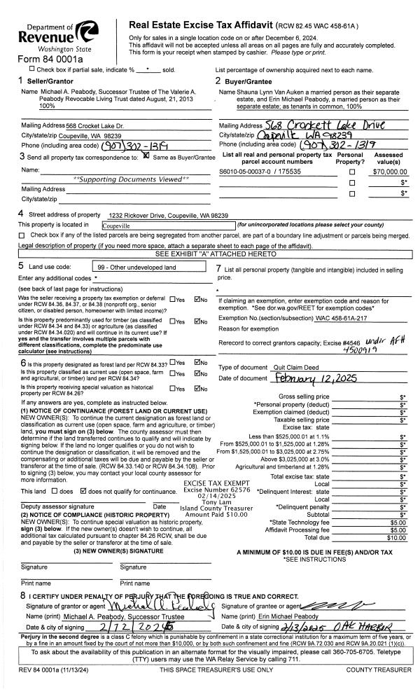 | 3 | 07/17/2023 | MANHOME | Manufactured Home | BOURDON, ADONIS J | WHIDBEY RE VENTURES LLC | | | $20,000.00 | 58278 | |