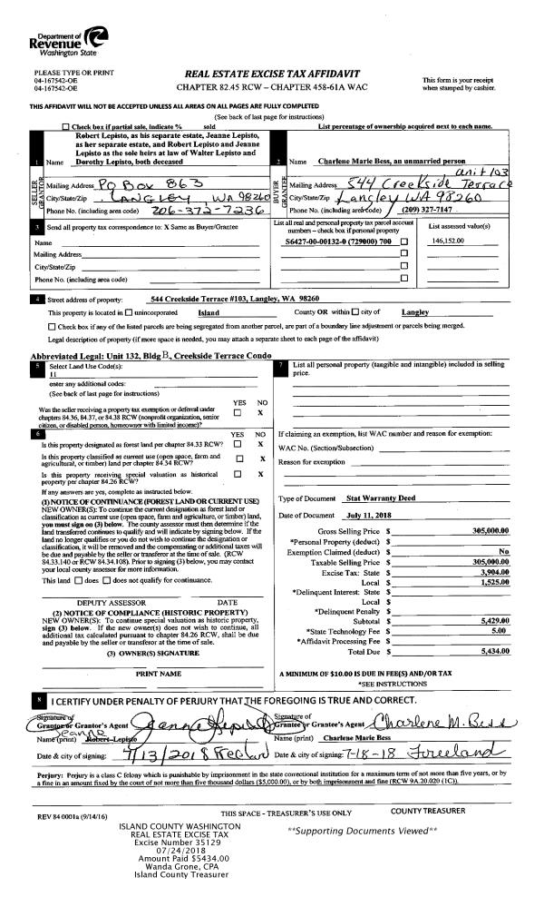 | 5 | 04/06/2018 | MANHOME | Manufactured Home | KOHLMAN-HOBSON, EVE | WHIDBEY RE VENTURES, LLC | | | $9,000.00 | 33624 | |