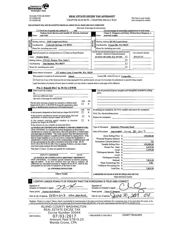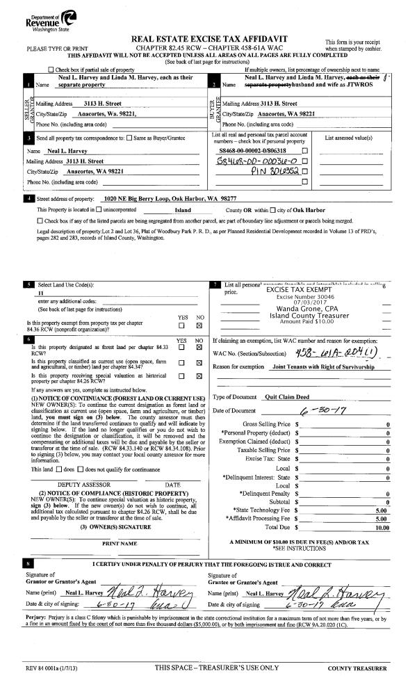 | Mailing Address: | 1979 SPRUCE RIDGE DR CAMANO ISLAND, WA 98282 | % Ownership: | 100.0000000000% |