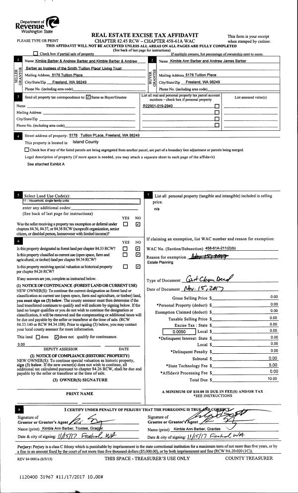| Mailing Address: | 3197 RICE CT CAMANO ISLAND, WA 98282 | % Ownership: | 100.0000000000% |
