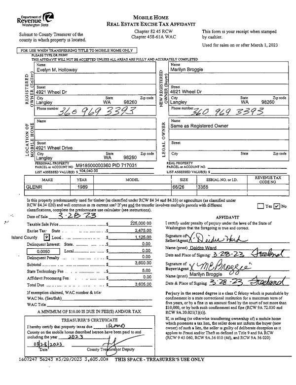 | Mailing Address: | 771 MAPLE GROVE RD CAMANO ISLAND, WA 98282 | % Ownership: | 100.0000000000% |