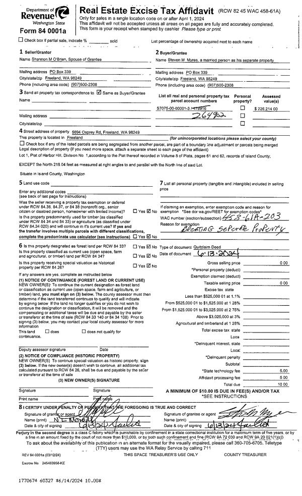 | Mailing Address: | 2374 VOYAGER TERRACE OAK HARBOR, WA 98277 | % Ownership: | 100.0000000000% |