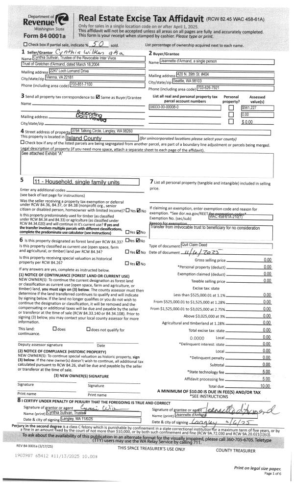 | Mailing Address: | 530 NE 6TH ST COUPEVILLE, WA 98239 | % Ownership: | 100.0000000000% |