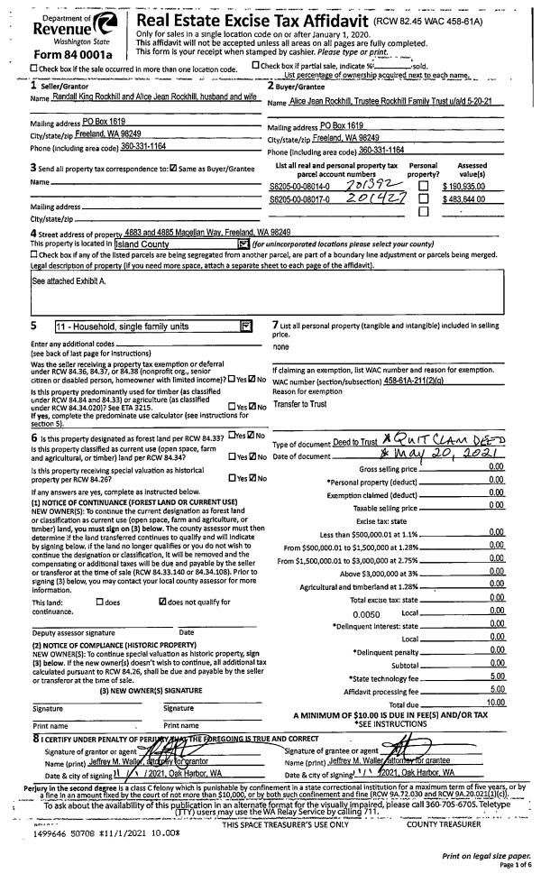 | Mailing Address: | ROBBY SUE QUIGLEY 595 LEWIS LN CAMANO ISLAND, WA 98282 | % Ownership: | 100.0000000000% |