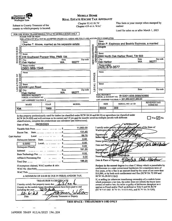 | Mailing Address: | 2350 LAKE FOREST DR OAK HARBOR, WA 98277-8639 | % Ownership: | 100.0000000000% |