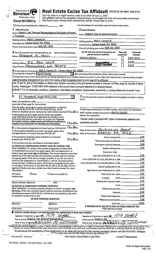 | 3 | 09/25/2003 | PRD | Personal Representatives Deed | HOLLOWAY, CHARLES T | HOLLOWAY, WILLIAM K | | | $0.00 | 34692 | 4079498 |