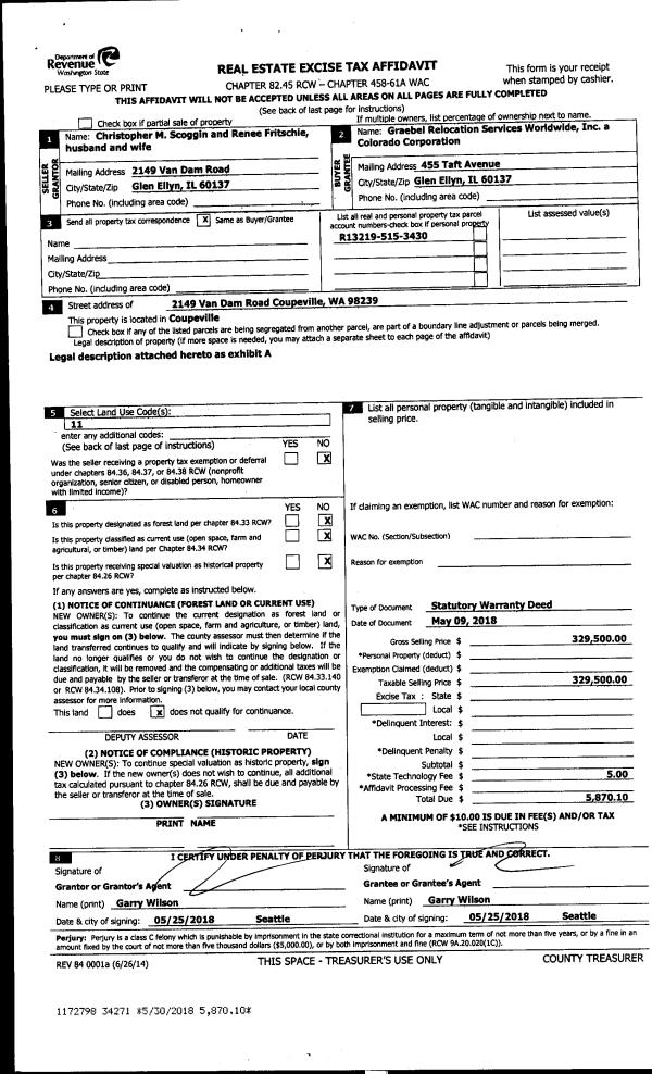 | 5 | 06/12/2013 | PRD | Personal Representatives Deed | HORSWILL ETAL, HELEN | HORSWILL, THOMAS | | | $0.00 | 11727 | 4342391 |