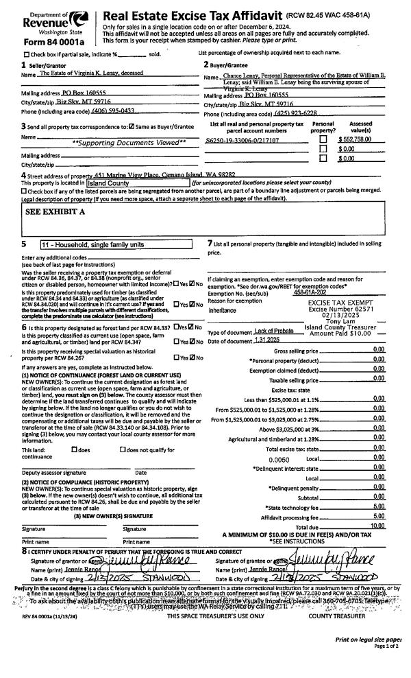 | Mailing Address: | 5335 HONEYMOON BAY RD FREELAND, WA 98249-9712 | % Ownership: | 100.0000000000% |