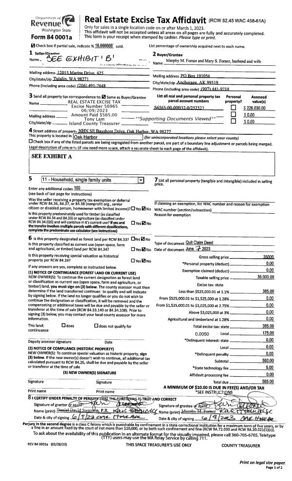 | Mailing Address: | MELISSA SYDNEY DALE 536 MAPLE GROVE RD CAMANO ISLAND, WA 98282-8650 | % Ownership: | 100.0000000000% |