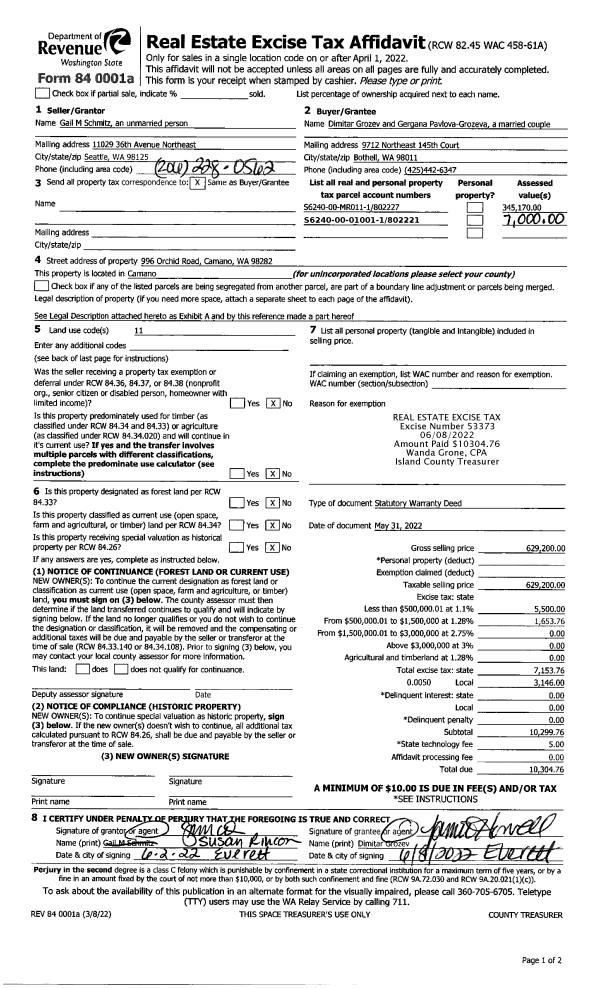 | 1 | 02/27/2012 | TTAXD | Treasurer's Tax Deed | ISLAND COUNTY TREASURER | GORE, MARK | | | $0.00 | 6976 | 4310649 |