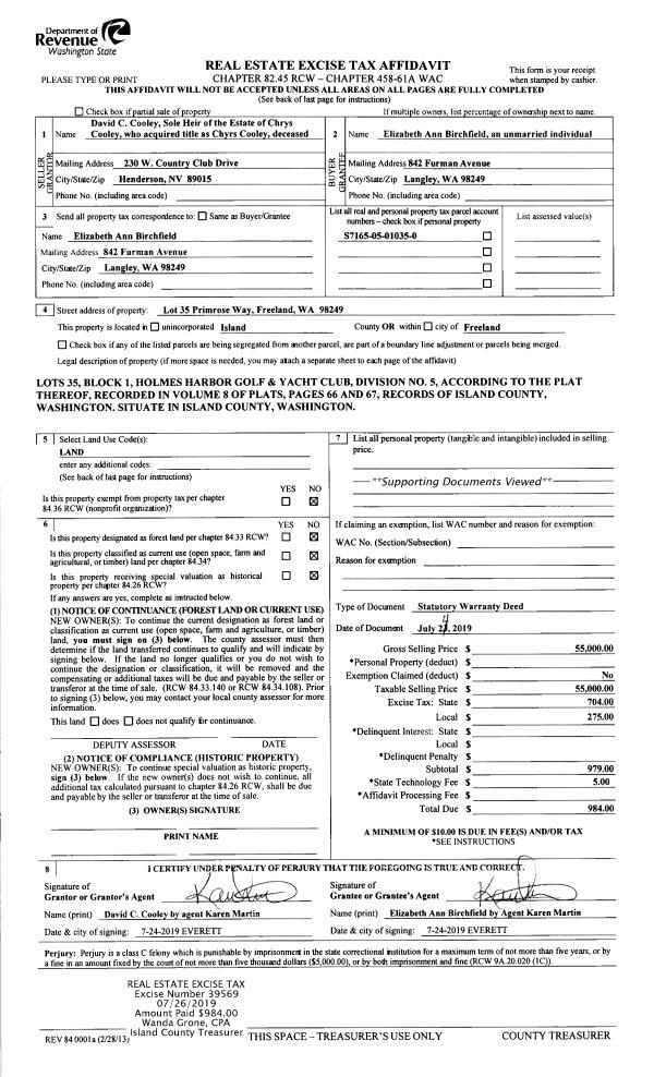| 9 | 07/22/1998 | WD | Warranty Deed | TINGLEY, CLARICE M | TINGLEY, CLARICE M | | | $10,000.00 | 82923 | 98015330 |