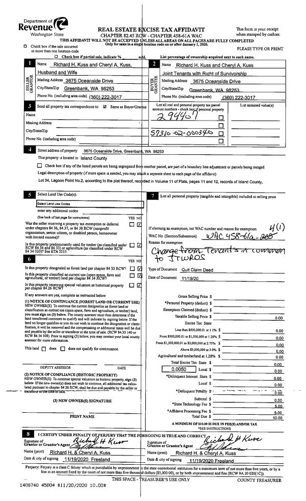 | Mailing Address: | 700 NW CROSBY AVE #92 OAK HARBOR, WA 98277 | % Ownership: | 100.0000000000% |