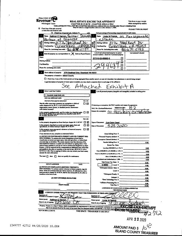 | Mailing Address: | CHRISTINE KELLN 341 SW ROODZANT ST OAK HARBOR, WA 98277 | % Ownership: | 100.0000000000% |