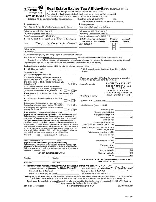 | Mailing Address: | ROBERT R HALTON PO BOX 1477 STANWOOD, WA 98292 | % Ownership: | 100.0000000000% |