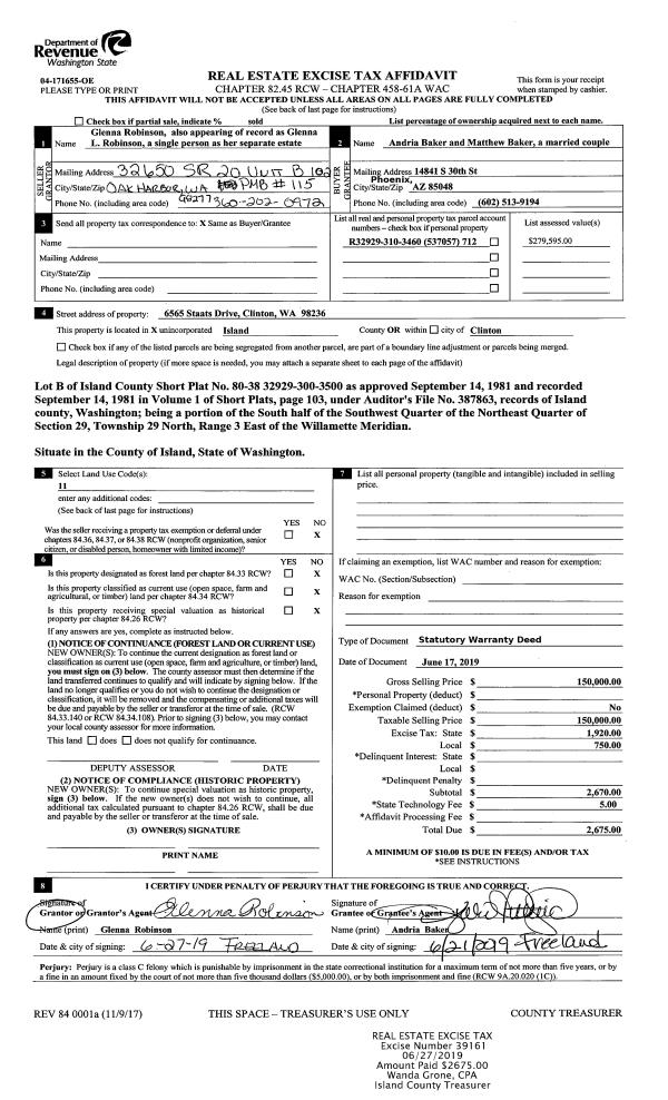 | Mailing Address: | 701 S MAIN ST, #28 COUPEVILLE, WA 98239 | % Ownership: | 100.0000000000% |