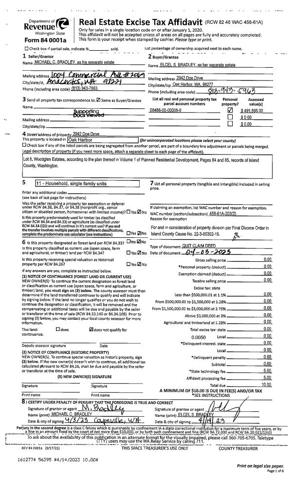| Mailing Address: | 296 N SUNSET DR CAMANO ISLAND, WA 98282-6606 | % Ownership: | 100.0000000000% |