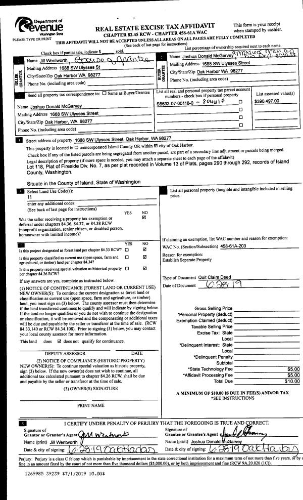 | Mailing Address: | 300 N OAK HARBOR ST APT A102 OAK HARBOR, WA 98277 | % Ownership: | 100.0000000000% |