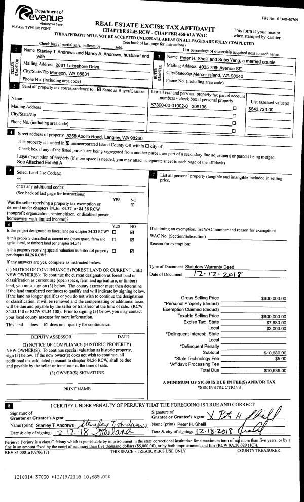 | Mailing Address: | 1495 SW 8TH AVE OAK HARBOR, WA 98277 | % Ownership: | 100.0000000000% |