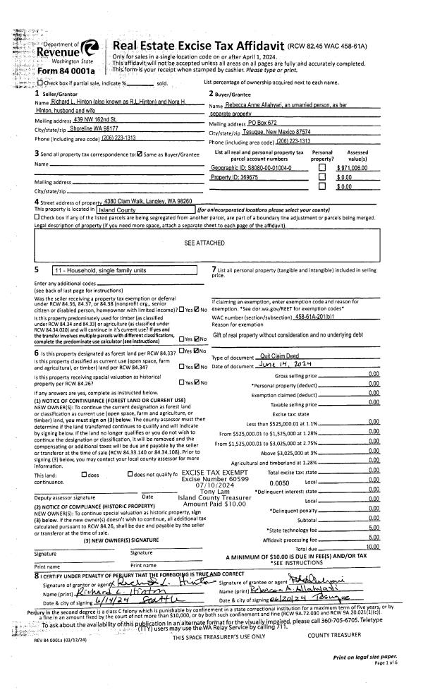 | Mailing Address: | 1600 SW 9TH AVE OAK HARBOR, WA 98277-7230 | % Ownership: | 100.0000000000% |