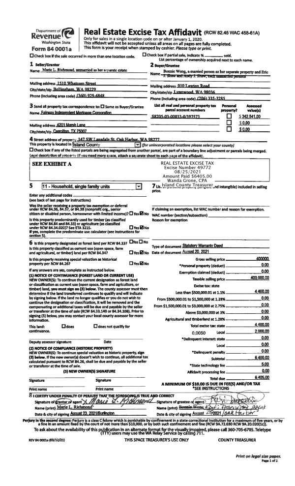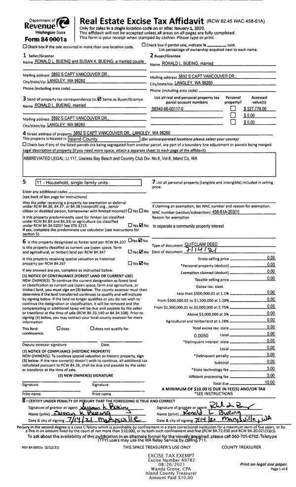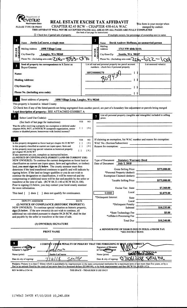 | Mailing Address: | 961 NE PENNINGTON LOOP COUPEVILLE, WA 98239 | % Ownership: | 100.0000000000% |