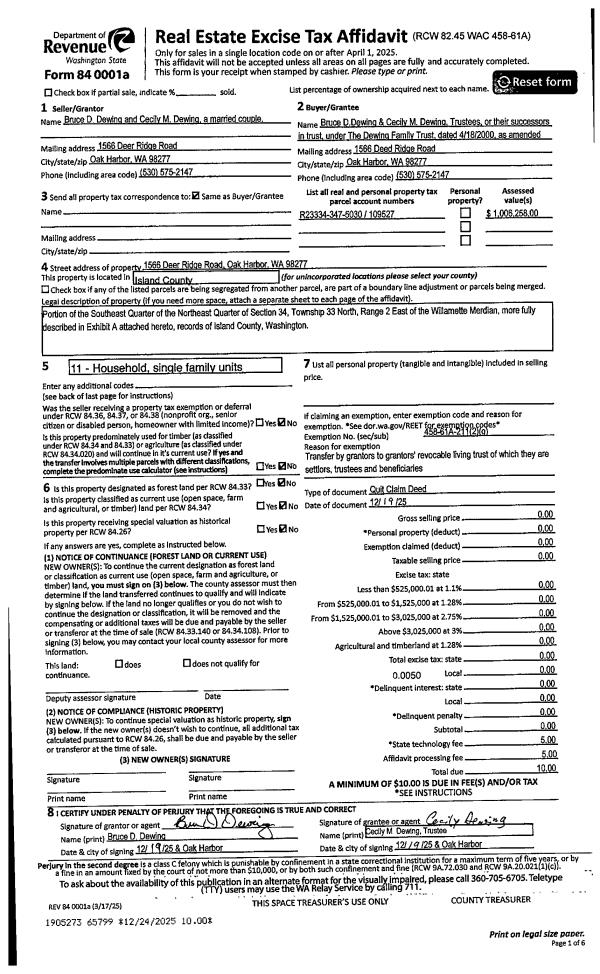 | Mailing Address: | WILLIAM A HAGOPLAN 7391 TAUSCHER LN CLINTON, WA 98236 | % Ownership: | 100.0000000000% |