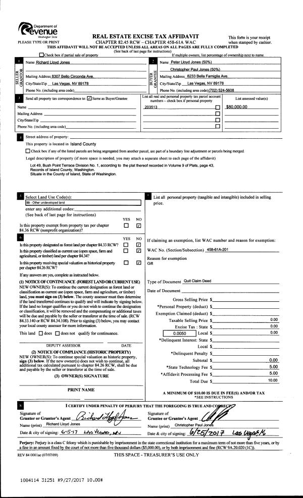 | 6 | 09/11/2002 | QCD | Quit Claim Deed | R&D PARK CREEK LLC, | STORKSON, DARRELL J | | | $0.00 | 23638 | 4031023 |