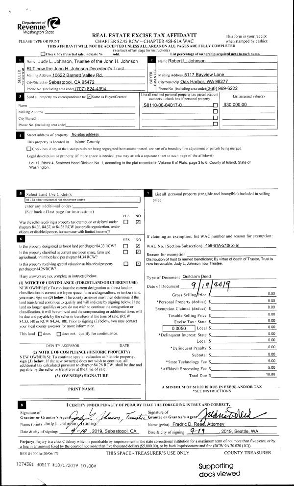 | Tax Area: | 719 - APPRAISER-S Whid Schl Dist, outside Langley, vacant & 50 acres or less | Land Use Code | 99 |