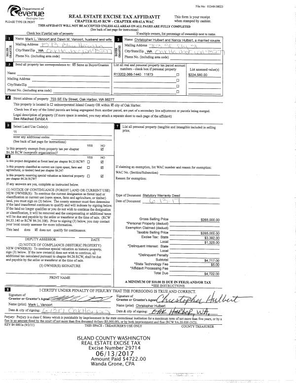 | Mailing Address: | 6615 MAPLELEAF DR CLINTON, WA 98236 | % Ownership: | 100.0000000000% |