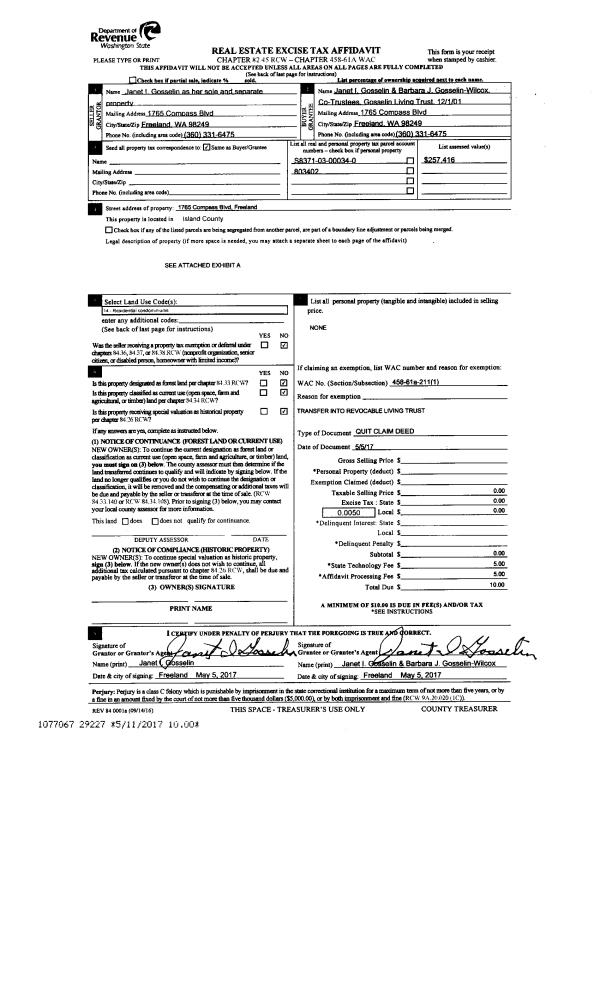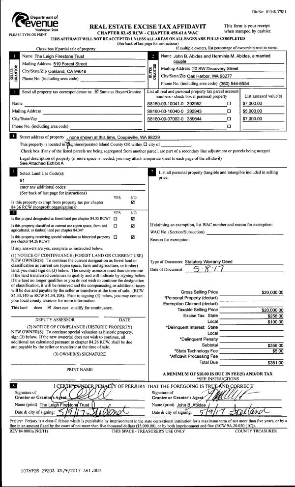 | Mailing Address: | ANITA MARIE DUBABIN 6633 MAPLELEAF DR CLINTON, WA 98236-8438 | % Ownership: | 100.0000000000% |