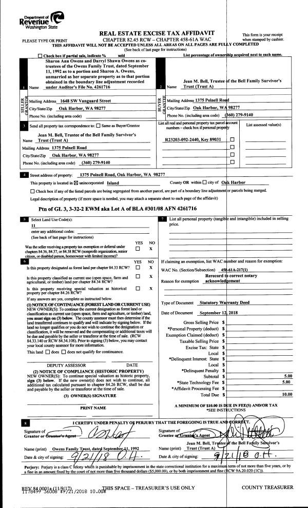 | Mailing Address: | HEIDI S RICHARD 1540 SW 17TH AVE OAK HARBOR, WA 98277-7112 | % Ownership: | 100.0000000000% |