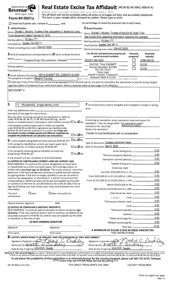 | Mailing Address: | 2226 HASTIE LAKE RD OAK HARBOR, WA 98277 | % Ownership: | 100.0000000000% |