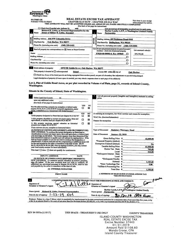 | Tax Area: | 712 - APPRAISER-S Whid Schl Dist, outside Langley, improved, greater than 1 acre | Land Use Code | 11 |