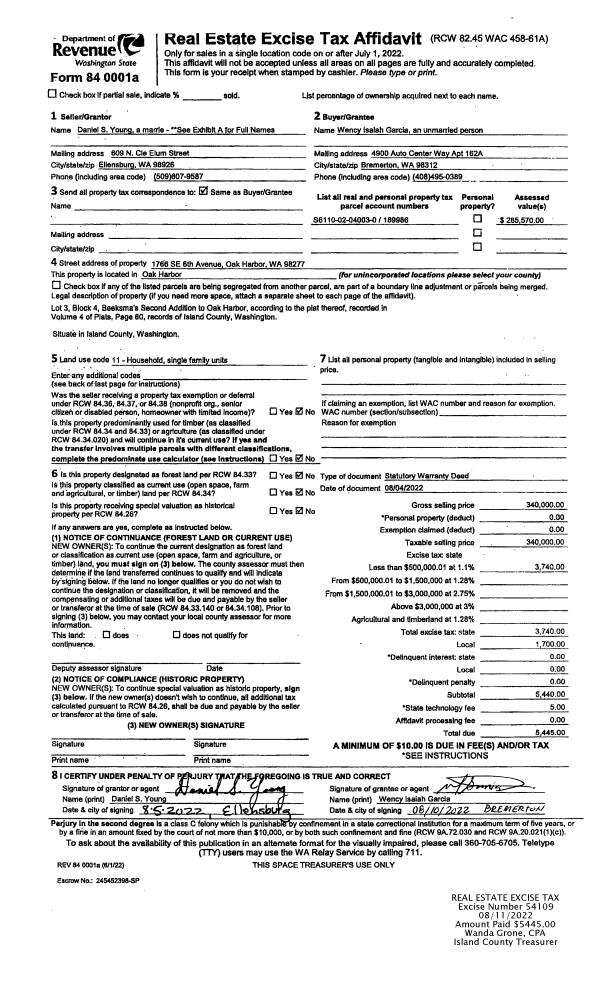 | 2 | 04/01/1996 | WD | Warranty Deed | CAMANO, WATER A | CAMANO, WATER A | | | $0.00 | 62855 | 96014209 |